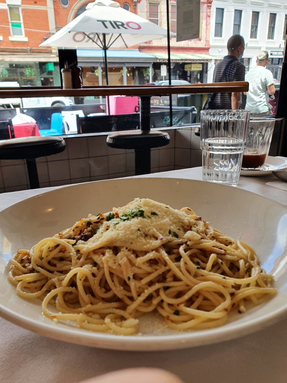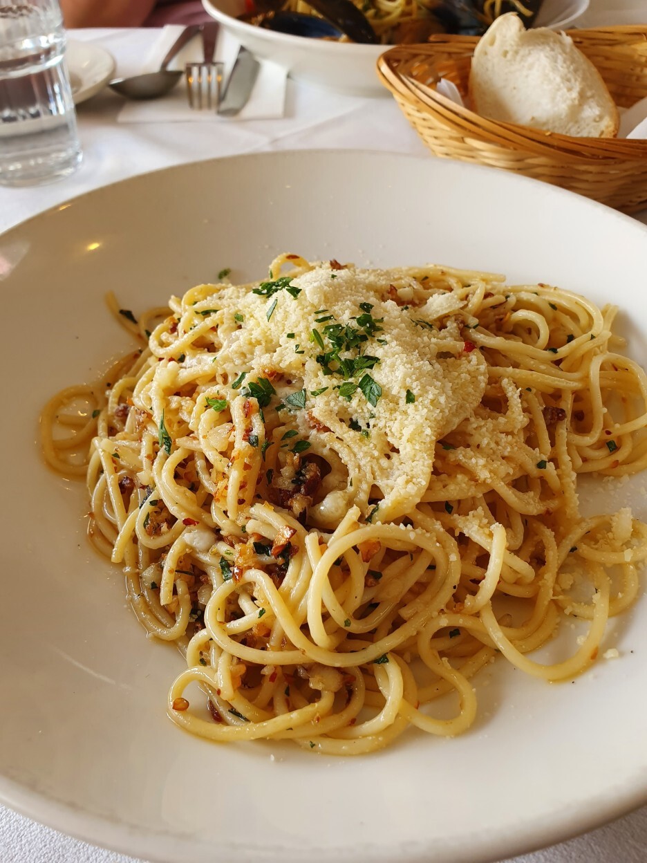 지인분이 시킨 알리오 올리오 파스타입니다. 마늘 향이 진하게 나는 파스타를 찾고 있다면 이곳입니다. 멜버른에서 알리오 올리오를 많이 먹어봤지만 이곳만큼 마늘향이 강하게 나는 곳은 처음이네요. 처음에 갈릭 브레드를 시킬까 고민했는데 따로 주문할 필요가 없을 정도였어요.