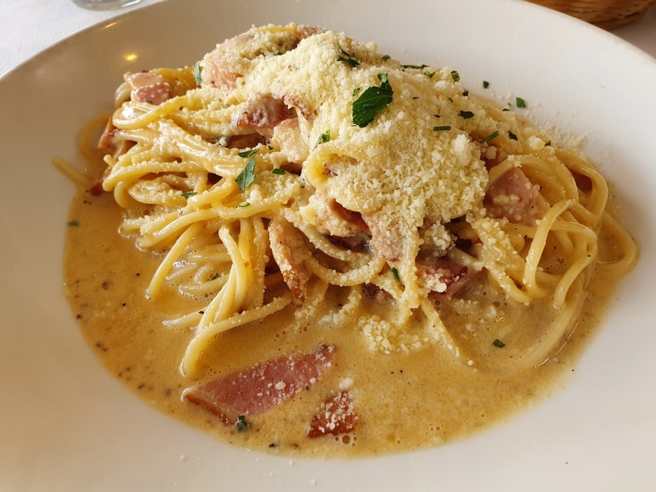마지막으로 카르보나라입니다. 카르보나라는 우리가 아는 그 맛이에요. 역시 파스타 모를 때는 카르보나라 시키면 반 이상은 먹고 들어가는 맛인 것 같아요. 치즈 향이 진하게 나며, 베이컨이랑 같이 먹으면 그날 점심으로 훌륭하죠.